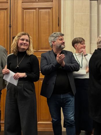 Vincent Vanhalewyn, 1er échevin (Ecolo) -à droite sur la photo- demande la démission d’Audrey Henry (MR) -à gauche sur la photo- devenue Secrétaire d’Etat à l’urbanisme et la propreté publique. Elle est désormais bourgmestre empêchée.